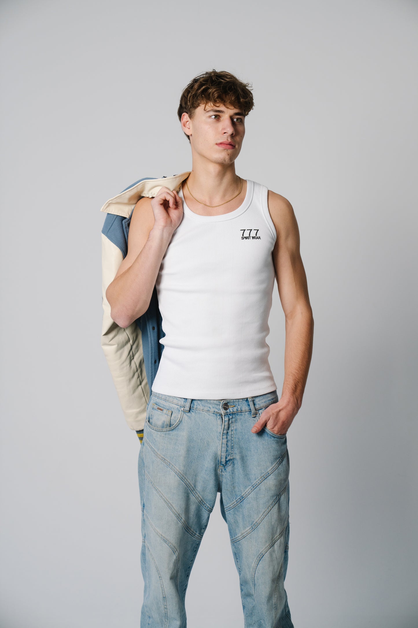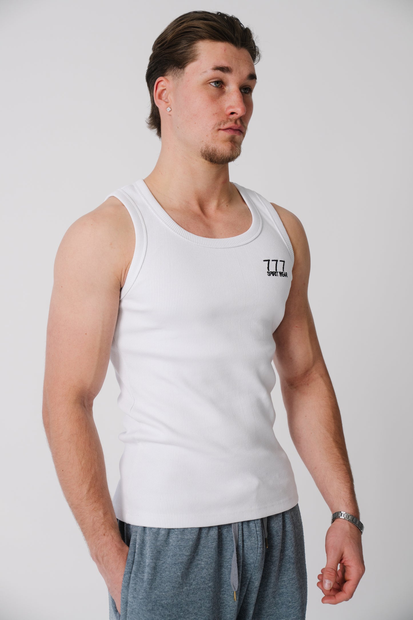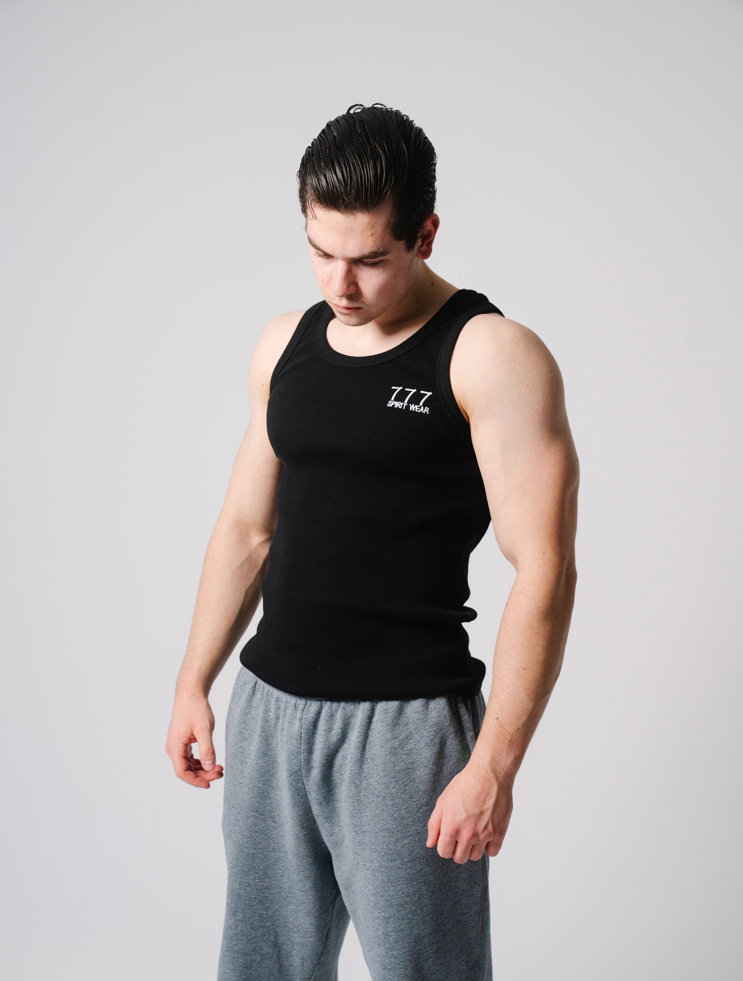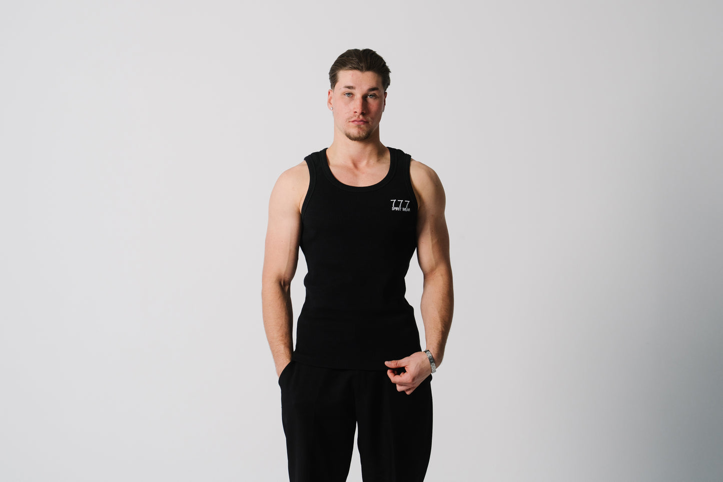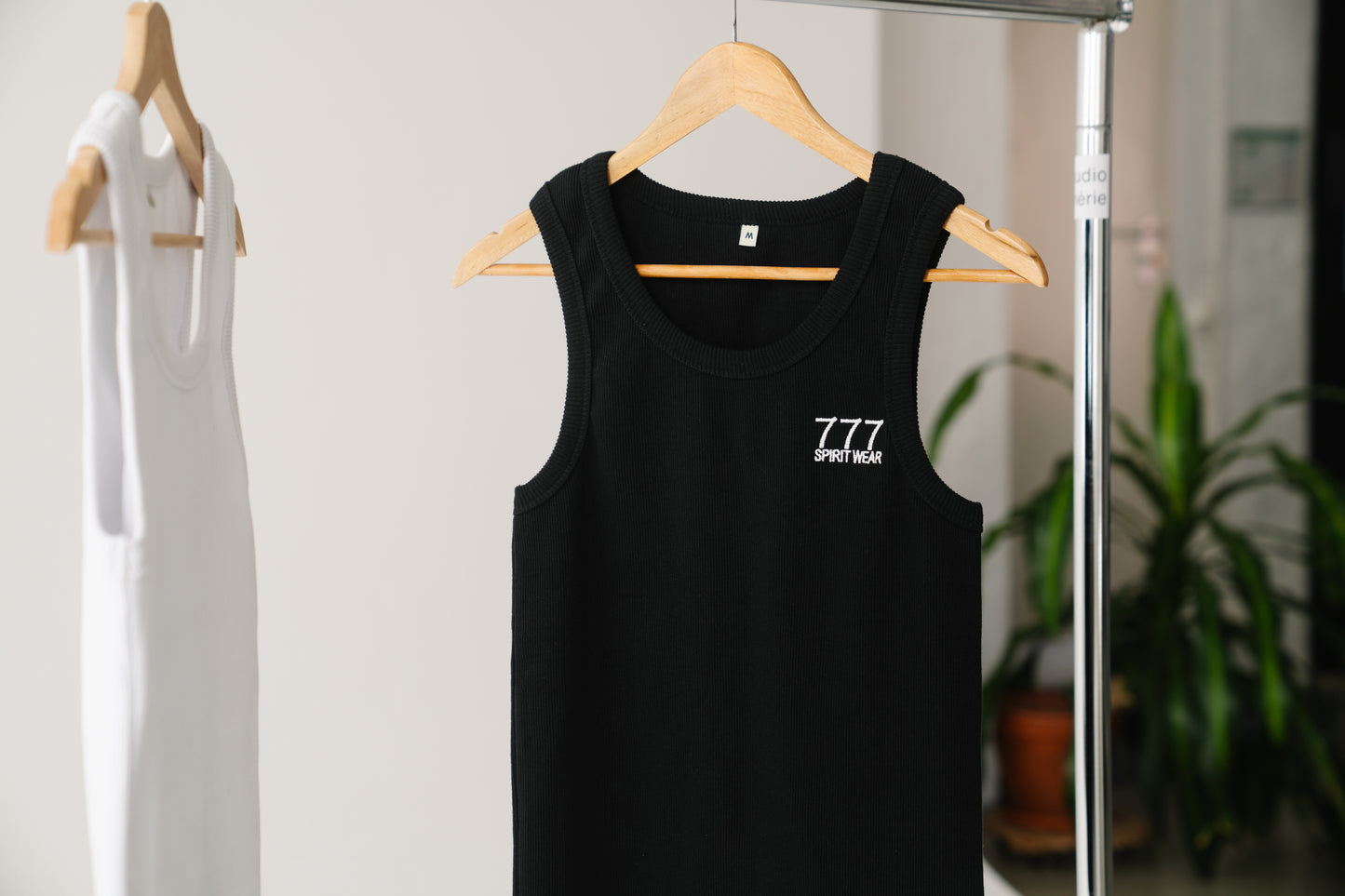 350 GSM Rib, 95% Baumwolle / 5% Elastan: weich, formstabil, bewegungsfreundlich. Eingestricktes 777-Logo – keine Prints – gemacht, um zu halten.